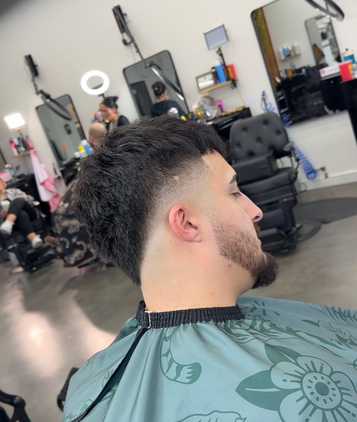 (Fades, burst fades, blowout tapers, mullets, textured fringe, slick backs, etc.)